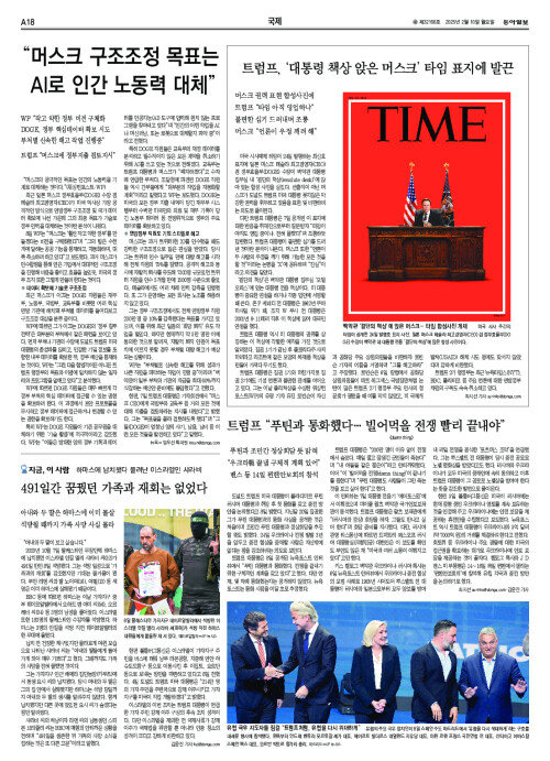 트럼프, ‘대통령 책상 앉은 머스크’ 타임 표지에 발끈