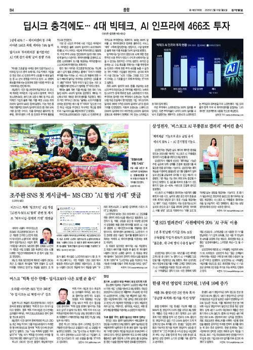 딥시크 충격에도… 4대 빅테크, AI 인프라에 466조 투자