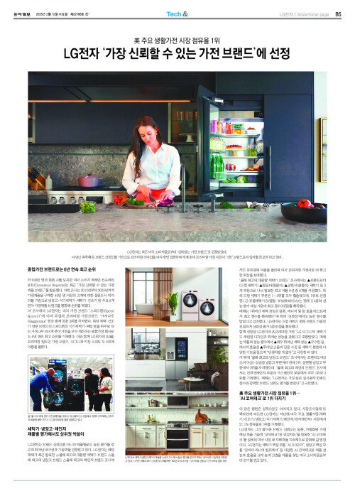 [Tech&]美 주요 생활가전 시장 점유율 1위… LG전자 ‘가장 신뢰할 수 있는 가전 브랜드’에 선정