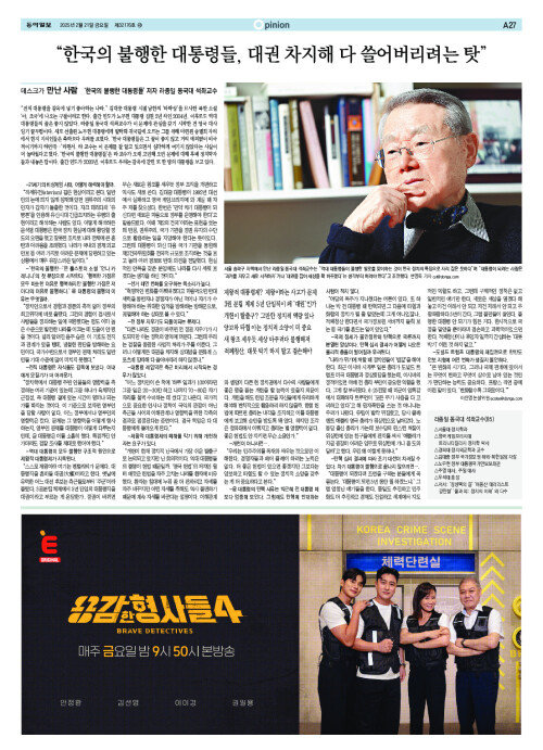 [데스크가 만난 사람]“한국의 불행한 대통령들, 대권 차지해 다 쓸어버리려는 탓”