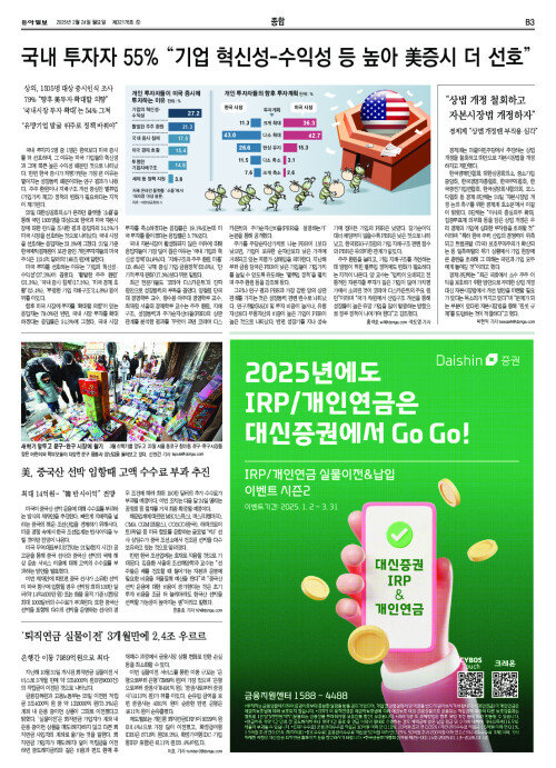 국내 투자자 55% “기업 혁신성-수익성 등 높아 美증시 더 선호”