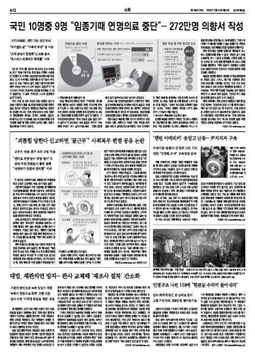 국민 10명중 9명 “임종기때 연명의료 중단”… 272만명 의향서 작성