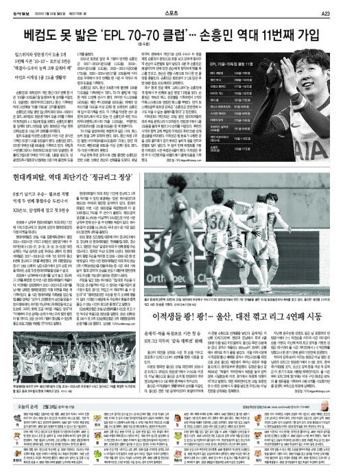 베컴도 못 밟은 ‘EPL 70-70 클럽’… 손흥민 역대 11번째 가입