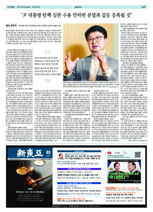 [월요 초대석]“尹 대통령 탄핵 심판 수용 안하면 분열과 갈등 증폭될 것”