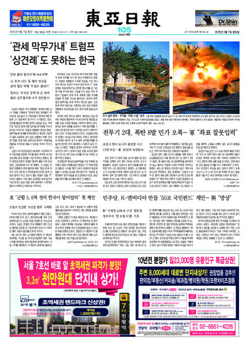 전투기 2대, 폭탄 8발 민가 오폭… 軍 “좌표 잘못입력”