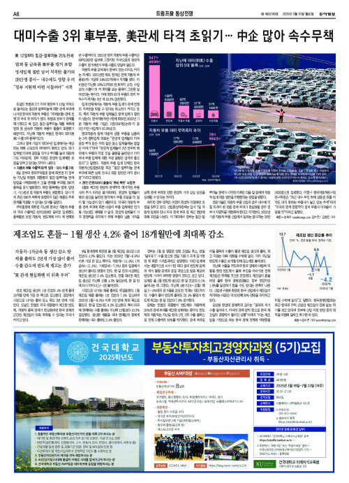 제조업도 흔들… 1월 생산 4.2% 줄어 18개월만에 최대폭 감소