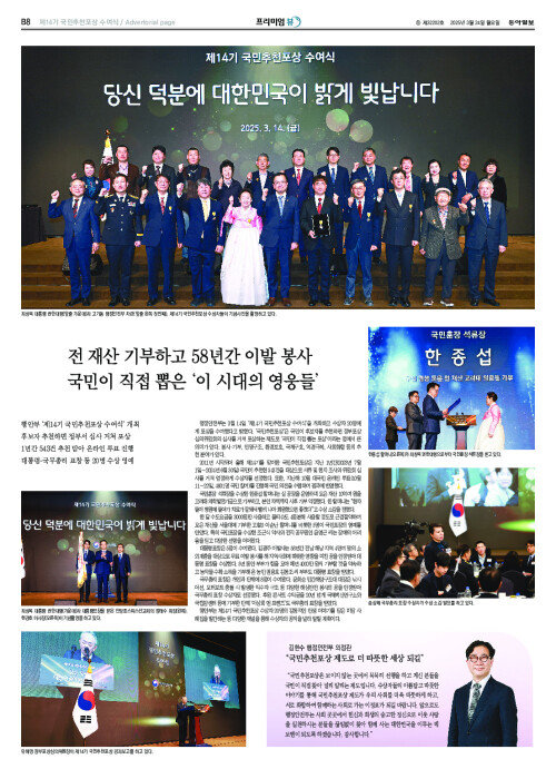 [프리미엄뷰]전 재산 기부하고 58년간 이발 봉사… 국민이 직접 뽑은 ‘이 시대의 영웅들’