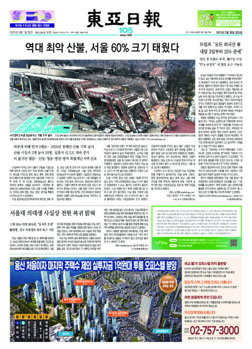 역대 최악 산불, 서울 60% 크기 태웠다