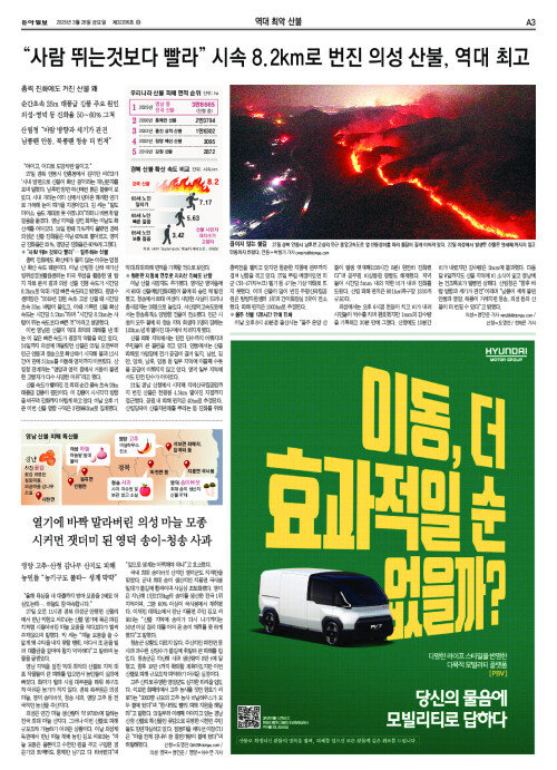 “사람 뛰는것보다 빨라” 시속 8.2㎞로 번진 의성 산불, 역대 최고