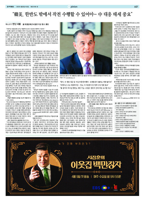 [데스크가 만난 사람]“韓美, 한반도 밖에서 작전 수행할 수 있어야… 中 대응 태세 중요”