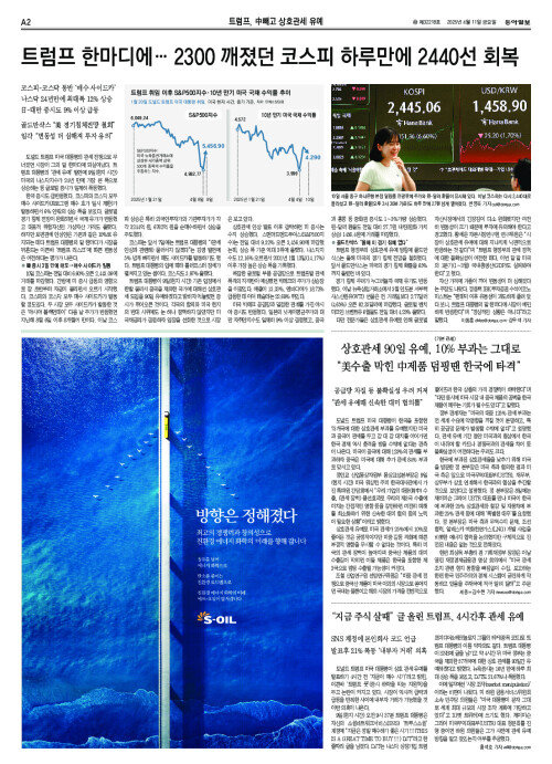 트럼프 한마디에… 2300 깨졌던 코스피 하루만에 2440선 회복