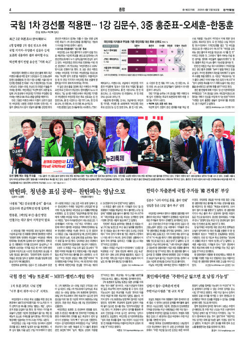 국힘 1차 경선룰 적용땐… 1강 김문수, 3중 홍준표-오세훈-한동훈