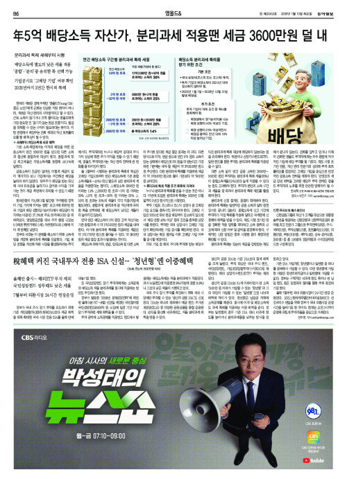 年5억 배당소득 자산가, 분리과세 적용땐 세금 3600만원 덜 내