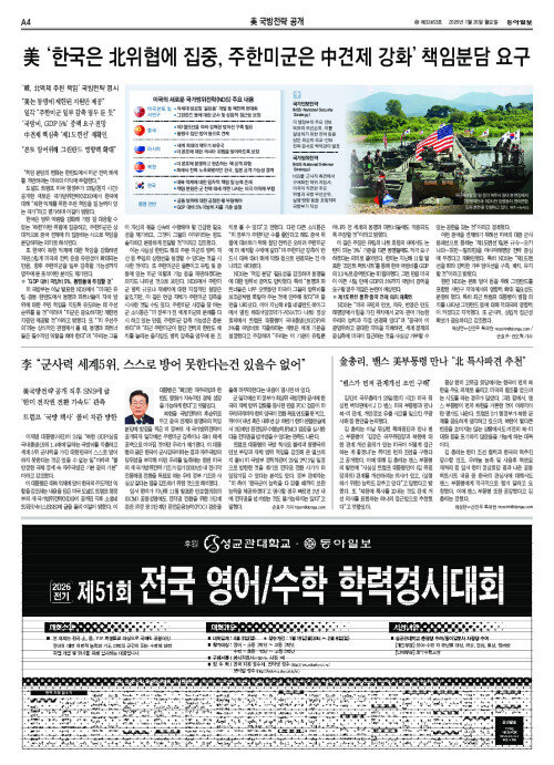[사설]美 NDS “韓 대북 억제 1차 책임”… 공고한 핵우산이 관건