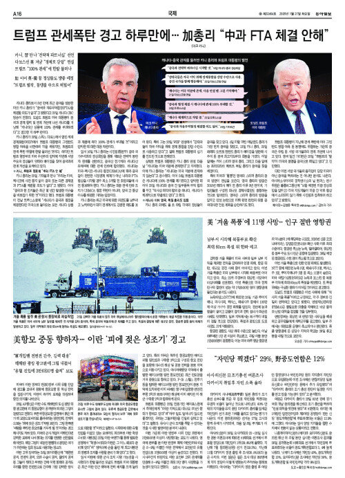 트럼프 관세폭탄 경고 하루만에… 加총리 “中과 FTA 체결 안해”