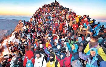 羊年的第一天凌晨,来自全国的数千名登山游客,聚到智异山天王峰(1915米)一起迎接今年第一个日出。