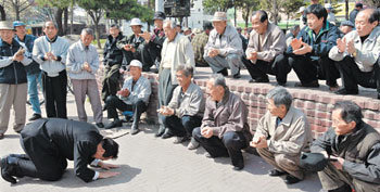 即使在弹劾政局下,也将会把韩国的民主主义提高一个台阶的第17届议会选举拉开了帷幕。候选人开始登记的31日,在忠北清州市兴德区中央公园,一位候选人正向老人们行大礼。