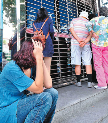 听到停业消息后情绪不安的ACEI银行客户在休息天18日来到仁川南洞区的银行总店。银行客户在倾听金融当局工作人员的说明。