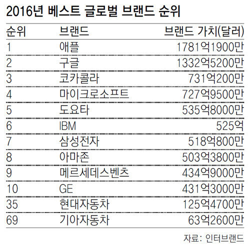 三星电子的品牌价值首次超过500亿美元,在世界100大品牌中占据第7位。现代汽车和起亚汽车的品牌价值也一起上升,分居第35位和第69位。5日,品牌咨询公司“InterBrand”发表了包含上述内容的“全世界100大品牌”调查报告。