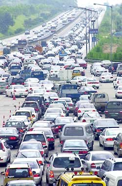 由于连休日正式开始,16日在京釜高速公路的宫内洞收费站附近,赛车情况比平时严重得多.