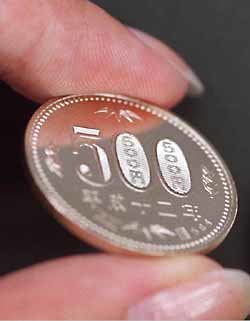 为了防伪,日本中央银行在1日开始在社会上流通的500元硬币的两个0字里镶嵌了500元的字样,因日本和韩国的500元硬币大小相同,在自动售货机等里曾引起混乱,所以日本发行了新硬币。