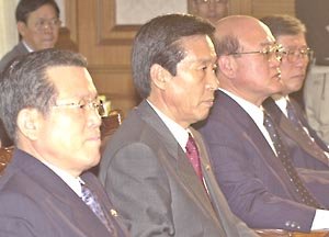 9日在汉城中央政府厅由李汉东总理主持召开的医疗界再罢工有关会议上,出席会议的有关部长们表情非常深刻。