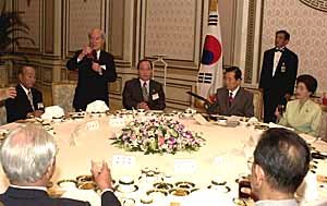 金大中总统于16日白天把光复会会员们邀请至青瓦台,与他们共进午餐并乾杯。