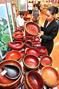 8日,现代百货公司新村店做为迎中秋活动,举办了木器制作家的‘木盆展览会’和现场制作活动.