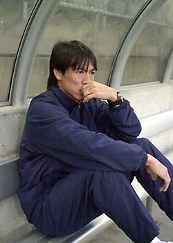 由于伤情恶化,未能实现参加奥运梦想的洪明浦,含着眼泪焦急地观看同伴们的训练场景.