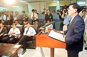 最近三年间的营业利润抵不上利息或是在新资产健全性基准以下的150--200个大企业,它们的复苏或是退出与否,将在10月中作出判断.在这当中,经判断有可能复苏的达到银行负债出资转换的企业,通过减资(减少资本金额)剥夺大股东的经营权.在这个过程中,对掩盖退出企业的亏损债券,判定为能复苏企业的银行,进行包括行长在内的经营人员的撤职的处置.