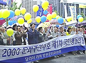 达赖喇嘛访韩准备委员会于11日下午在塔骨公园举行了'2000保护文化主权的国民行动日’活动.为达赖喇嘛11月访韩时能够获得许可而在进行街头示威.