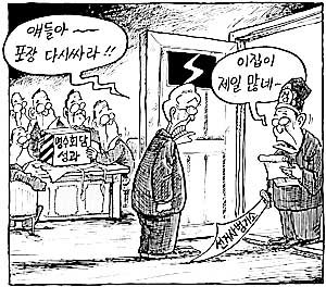 李会昌(对正在解写着‘领袖会谈成果’字样的礼物包裹的议员们):孩子们,重新包装吧!