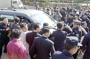 最近,派往北韩的工作人员的个人自然情况被公开.为此,他们于2日在进行国会情报委国政监查的汉城瑞草区情报司令部前进行抗议示威,要求政府采取恢复他们自身名誉的措施.
