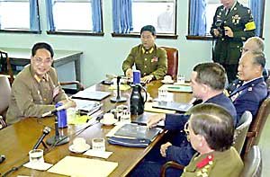 联合国军司令部和北韩军17日在板门店军事停战委员会会议室中举行将军级会谈,在把京义线贯穿其间非武装地带(DMZ)南北管理区域的管理权转交给南韩的协议书上签名后,双方继续交谈.
