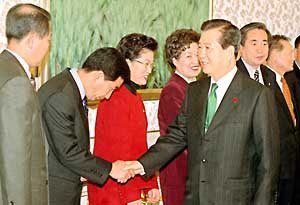 继星期六与民主党最高委员们举行恳谈会后, 金大中总统星期一又会见民主党的总裁特补小组智囊团, 听取收复民心的方案. 在青瓦台的午餐恳谈会上, 金总统一反平时的做法, 省略一切发言, 在小组组长李相洙的简单寒喧之后, 立刻听取了14名组员的发言. 一名与会者表示发言内容用一句话来概括, 即现在的严峻情况已经超越了‘小试牛刀’可以解决的范畴, 必须全面刷新国政. 另一位组员表示其他人的言词如此激烈, 我不得不看看总统的脸色.