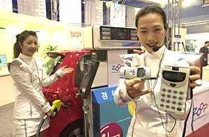 "只要有移动电话, 就能用信用卡结帐!". 风险企业"HAREX InfoTech"在汉城COEX展开的2000年电子商务博览会上, 向观众介绍利用移动电话结帐的一种新的服务方式.
