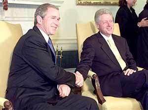 克林顿总统还在当天与访问白宫的下届总统当选者乔治-布什就访北问题达成了重要协议。白宫发言人洛克哈特表示,克林顿总统与下任总统布什,就包括北韩问题在内的外交政策,进行了有意义的深层次交谈。暗示了布什对克林顿总统的访北一事,表示了肯定的态度。据悉,最近北韩已经同意停止远程导弹的开发、生产、试验以及向伊朗出售导弹等美方提出的要求。但是同时,作为交换条件,北韩要求美国对发射人造卫星给予支援.此外,克林顿总统已派出国家安全事务助理柏杰等人,与下任国务卿鲍威尔以及国家安全事务助理赖斯接触,向他们说明北美之间协商的进展,并强调访北的必要性。