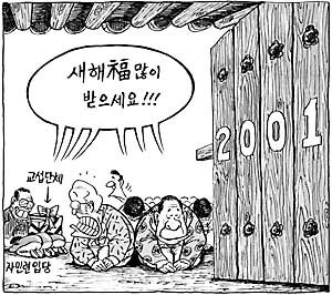 因民主党3名议员(左)的入党,能够组成交涉团体的自民联皆大欢喜。大国家党总裁李会昌(中)目瞪口呆。