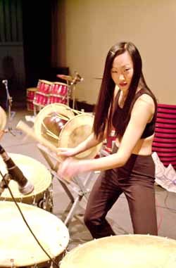 鼓和长鼓等乐器的激烈“呻吟”回荡在剧场,乐声震撼人心。可是笔者的视线不知不觉停在了Ellen Hwalan Shub(28)身上。