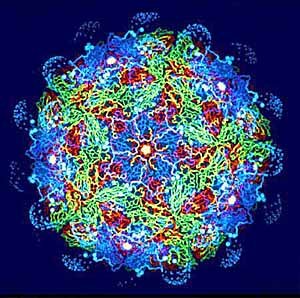 英国牛津大学做出了口蹄疫病毒的电脑合成图片。22日,传来英国各地发生口蹄疫的消息后,在英国周围地区发出警戒警报并关闭了屠宰场。同时,政府指示农场和屠宰场要保持清洁卫生。
