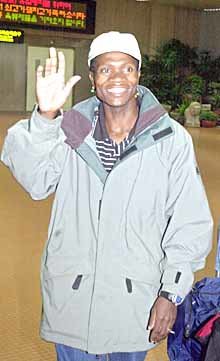 96年亚特兰大奥运会上获得金牌的马拉松选手杜瓦尼(Josia Thugwane,南非)14日抵达汉城。杜瓦尼准备参加即将举行的2001东亚汉城国际马拉松大会。