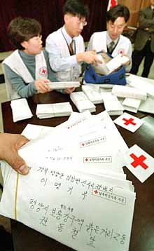 15日,板门店首次实现南北分裂以来的书信交换,大韩红十字协会的职员14日将300名离散家属的信件放进邮袋。大韩红十字协会收到来自北韩的信件后,将个别通知南韩的家属,并于16日开始递送信件。