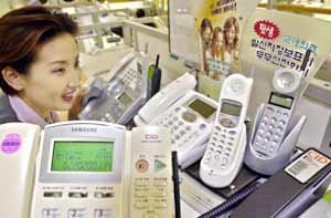 具有显示来电者身份(CALLER ID)功能的新型电话机,19日在汉城一家百货商店电子产品销售部展出,吸引了许多顾客。这种新型来电显示服务,经4月份的测试后,5月将正式提供收费服务。