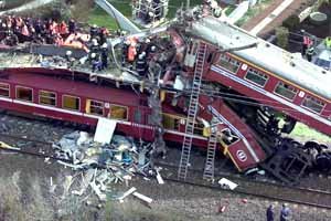 27日上午,比利时布鲁塞尔东南部20公里处,两辆旅游列车相撞,导致8人死亡,10余人受伤。列车相撞时,一辆列车窜至到另一辆列车顶上,前面的客车撞得支离破碎,面目全非。
