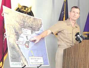 美国海军侦察机和中国战斗机在中国南海上空发生相撞事件后,美国太平洋战区司令布莱尔1日在夏威夷檀香山召开紧急记者招待会,用手指着出事地点解释当时紧迫的情况。