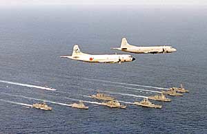 美国海军Skinny Dragons 第四飞行中队所属的P3Orion反潜巡逻机(右)和日本反潜巡逻机,24日在夏威夷附近海域进行了军事演习。当天出动的美方巡逻机与出售给台湾的反潜巡逻机是同样的机种。