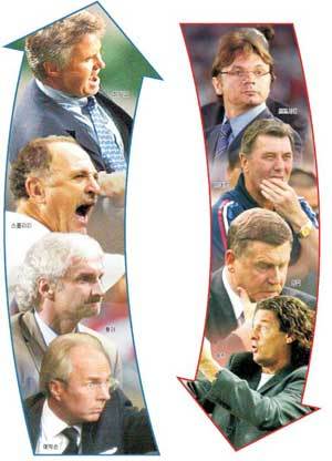 与此相反,把韩国队领进世界杯4强大门的希丁克主教练、令巴西队再捧冠军奖杯的斯科拉里主教练、率领德国队进军决赛的鲁迪·勒沃尔主教练等人士,虽然已离开原来国家队,但他们的人气不亚于超级明星。