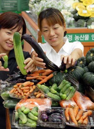 “大个头令人讨厌,小个头最美丽。”29日,新世界百货店汉城江南分店推出手指大小的茄子、黄瓜、胡萝卜,以及拳头大小的甜南瓜等小巧的“迷你蔬菜”。