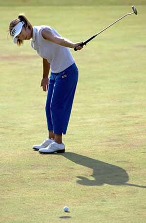 在最初的3个洞上救球成功的金美贤继第4号洞(4杆)打出第一次小鸟球后,接着在7号洞(4杆)和8号洞(3杆)上,连续打出了小鸟球,成绩转向上升势头。
