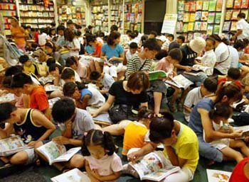 迎来暑假,全国的大型书店,正成为学生们既能读书,又能避暑的绝好的休息场所。8日下午,在汉城市内的一家大型书店中,小学生们正专心致志地读书。